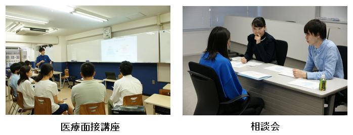 相談会、報告会、同窓会、一日医師体験、医療面接講座、応援メッセージ等