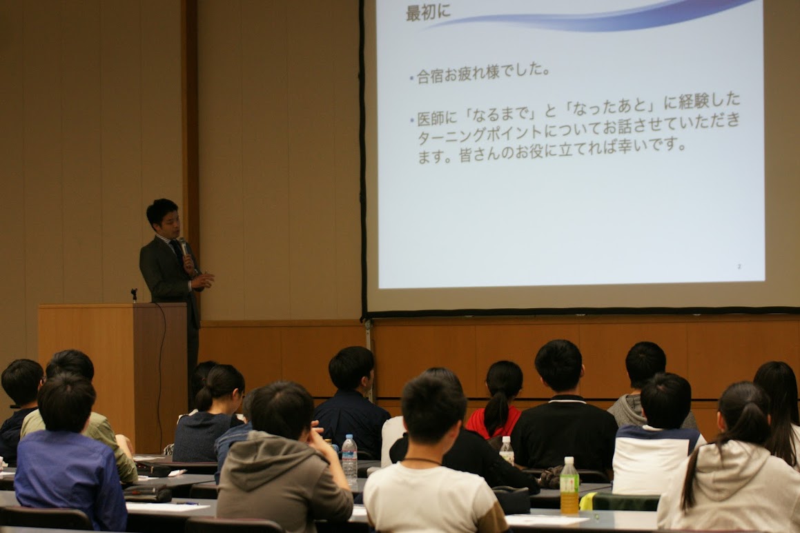 毎年池袋理数セミナーの卒業生や保護者の方をお招きして、現在行っている活動やお仕事についてお話していただいています。実際に医療現場でご活躍されている卒業生の先輩方や、保護者様からのお話を聞くことで、現在受験勉強中の在校生や学生の卒業生が、より将来を明確にしていくきっかけや自分の視野を広げられる貴重な機会となっています。