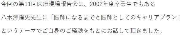 ※あわせて「第11回医療現場報告会を開催致します!」もご覧ください。