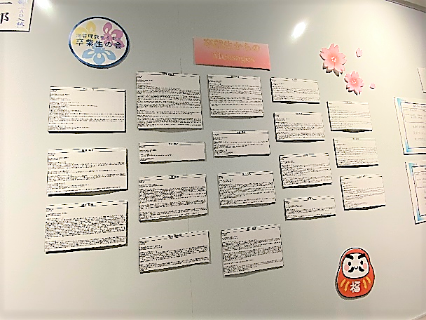 かつて同じ境遇で受験を乗り越えた卒業生から生徒に向けて、受験生時の「勉強への取り組み方」「モチベーション管理」「不安や失敗などの乗り越え方」などの経験談を交えた応援メッセージを贈っています。池袋理数セミナー内への掲示やSNSなどでも紹介しています。