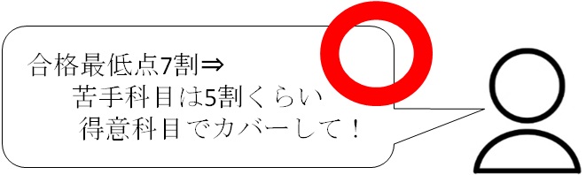 例えば、合格最低点が7割の大学があったとして、どの科目も一律7割の目標で過去問に取り組んでいては、戦略的ではありません。
