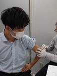 予防接種を受けるサポートルームスタッフの今野さん