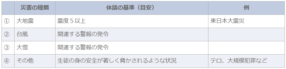 該当災害と休講措置の基準